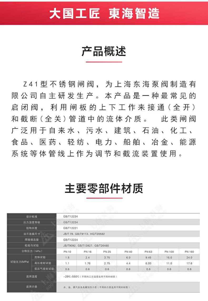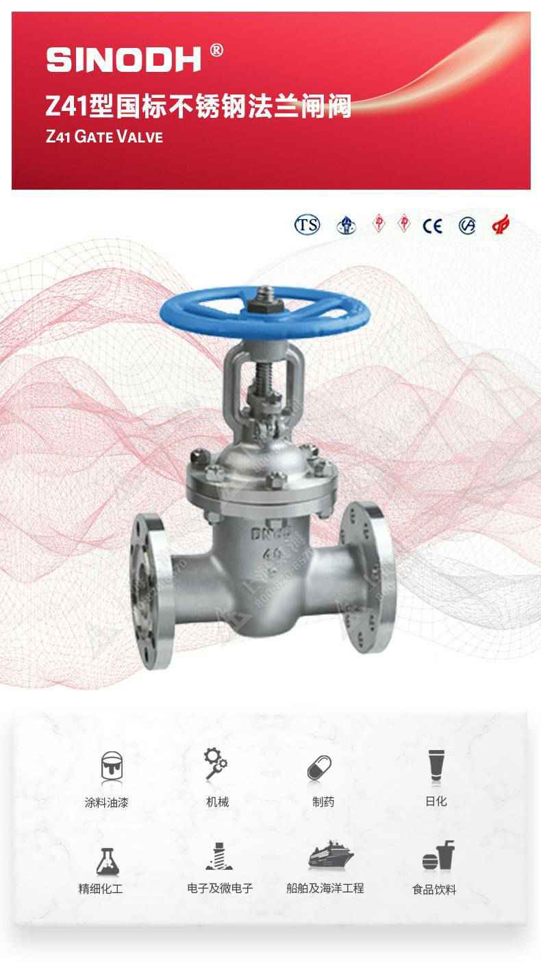 Z41型不锈钢闸阀,为星空网站网页版入口-星空(中国)自主研发生产。本产品是一种最常见的启闭阀,利用闸板的上下工作来接通(全开)和截断(全关)管道中的流体介质。此类闸阀广泛用于自来水、污水、建筑、石油、化工、食品、医药、轻纺、电力、船舶、冶金、能源系统等体管线上作为调节和截流装置使用。