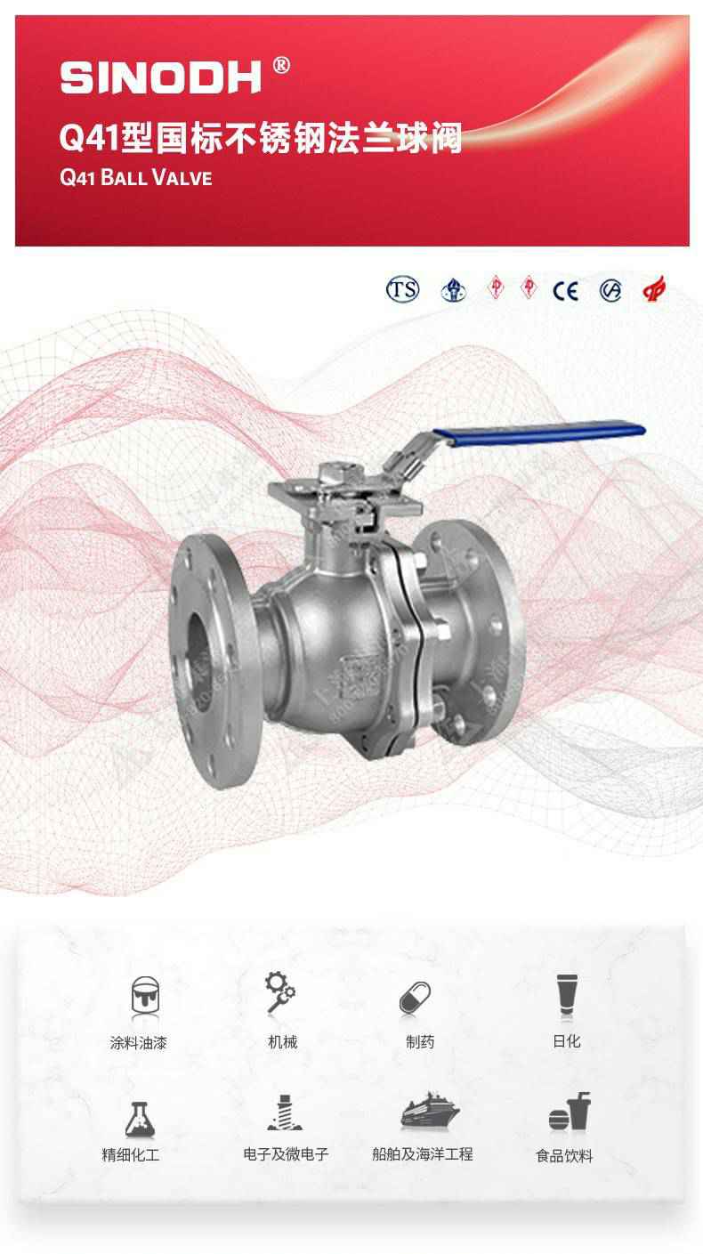 Q41型国标不锈钢法兰球阀,为星空网站网页版入口-星空(中国)自主研发生产。本产品设计制造标准符合GB/T12237、GB/T 1 2224标准该产品的球体在介质压力作用下,球体能产生-定的位移并紧压在出口端的密封面上,保证出口端密封。适用于水、溶剂、酸和天然气等-般工业介质,也适用于工况恶劣的介质,如氧气、过氧化氢、甲烷和乙烯等介质。